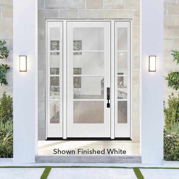 Legacy 64 in. x 96 in. Icon 4L Modern ClearGlass LHIS Unfinished Fiberglass Prehung Front Door with 2-12" SLs and 4"Jamb