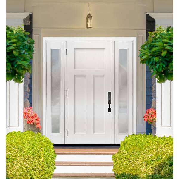 Legacy 64in. x 80in. 3 Panel Craftsman RHOS Unfinished White Fiberglass Prehung Front Door w/Clear 12 in. SLs4-9/16 Jamb