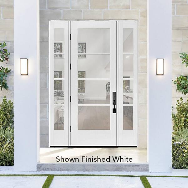 Legacy 64in. x 96in. Icon 4L Modern ClearGlass RHOS Unfinished Fiberglass Prehung Front Door w/2-12 in. SLs & 4 in. Jamb