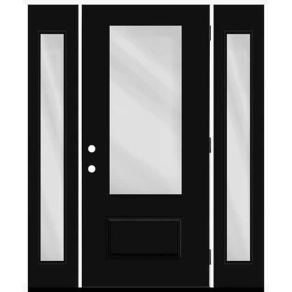 Legacy 68 in. W. x 80 in. 3/4 Lite Rain Glass LHOS Primed Black Finish Fiberglass Prehung Front Door with Db. 14 in. SL