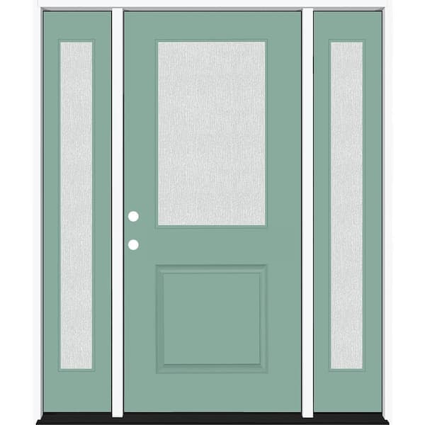Legacy 68 in. x 80 in. 1/2 Lite Rain Glass RHIS Primed Quarry Finish Fiberglass Prehung Front Door w/Dbl 14 in. SL