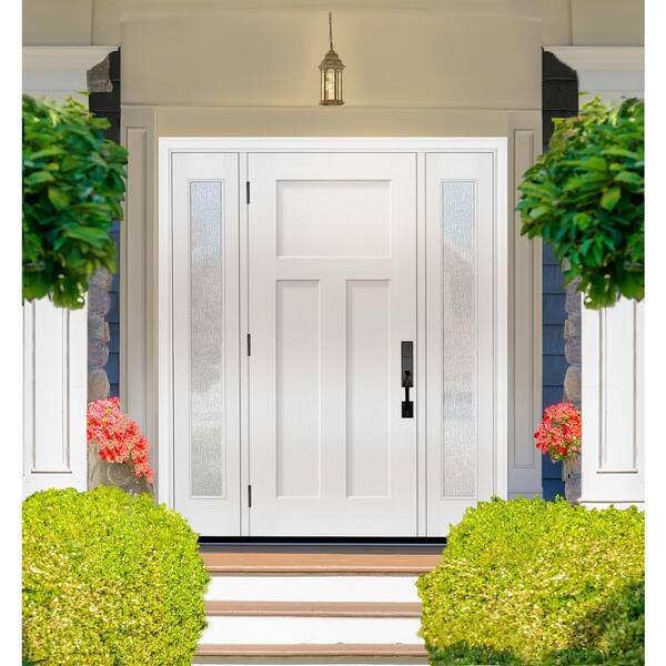 Legacy 68 in. x 80 in. 3 Panel Craftsman RHOS Unfinished White Fiberglass Prehung Front Door w/Rain 14 in.SLs 6-9/16Jamb