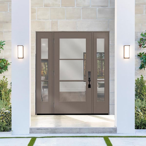 Legacy 68 in. x 80 in. Icon 3 Lite Modern Clear Glass RHOS Kindling Mahogany Fiberglass Prehung Front Door Dbl 14 in. SL
