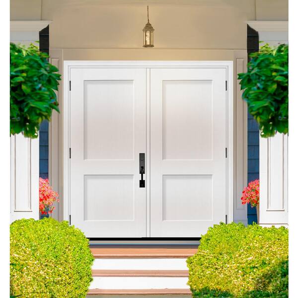 Legacy 72 in. x 80 in. 2P Squaretop Shaker RHOS Unfinished White Fiberglass Double Prehung Front Door w/6-9/16 Jamb