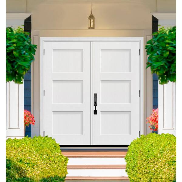 Legacy 72 in. x 80 in. 3P Equal Shaker LHOS Unfinished White Fiberglass Double Prehung Front Door w/6-9/16 Jamb