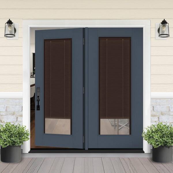 Legacy 72 in. x 80 in. Full Lite Clear Glass Mocha MB Dark Denim RH Center-Hinged Fiberglass Retro Patio Door w/4"Jamb