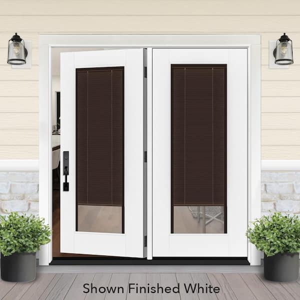 Legacy 72 in. x 80 in. Full Lite Clear Glass Mocha MB White RH Center-Hinged Fiberglass Retro Patio Door with 4 in. Jamb