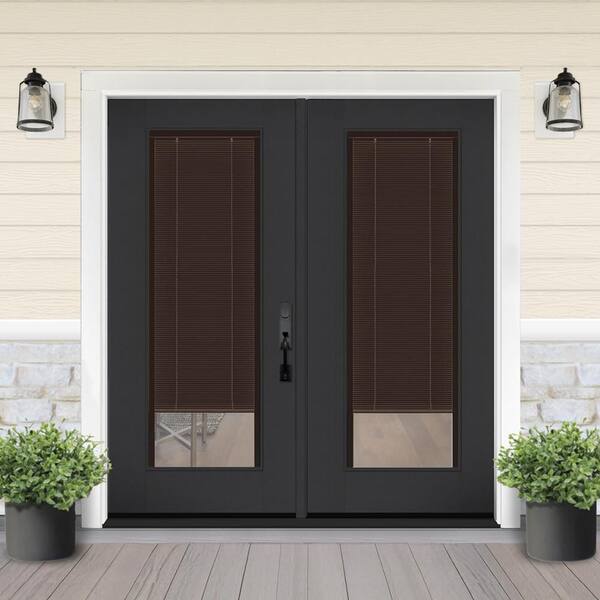 Legacy 72 in. x 80 in. Full Lite Clear Glass Mocha Miniblind Black LHIS Fiberglass Retro Patio Door with 6 in. Jamb