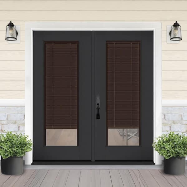 Legacy 72 in. x 80 in. Full Lite Clear Glass Mocha Miniblind Black RHIS Fiberglass Retro Patio Door with 6 in. Jamb