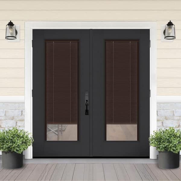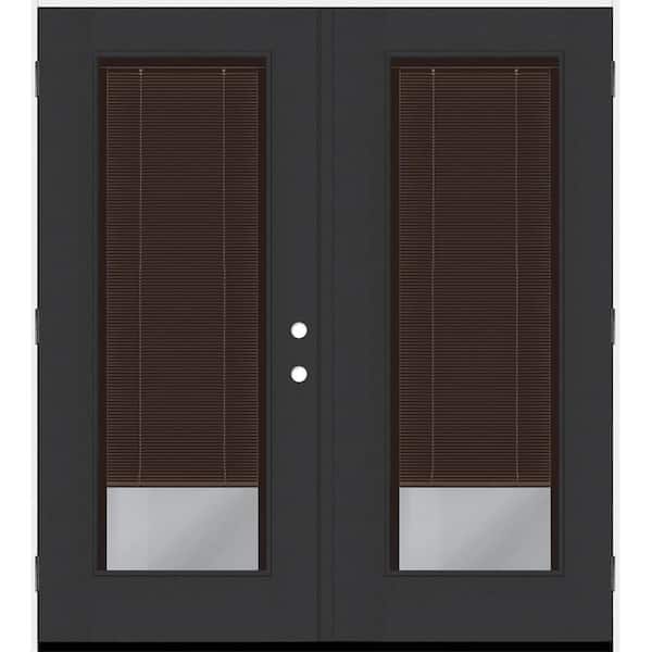 Legacy 72 in. x 80 in. Full Lite Clear Glass Mocha Miniblind Black RHOS Fiberglass Retro Patio Door with 4 in. Jamb