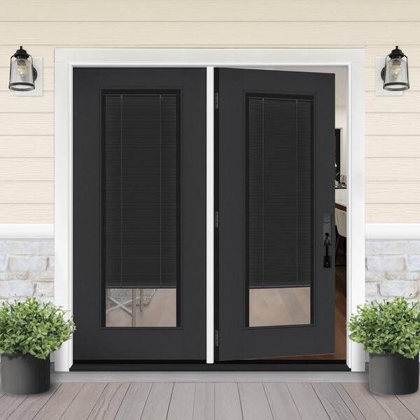Legacy 72 in. x 80 in. Full Lite Clear Glass Noir MB Black LH Center-Hinged Stained Fiberglass Retro Patio Door w/6"Jamb