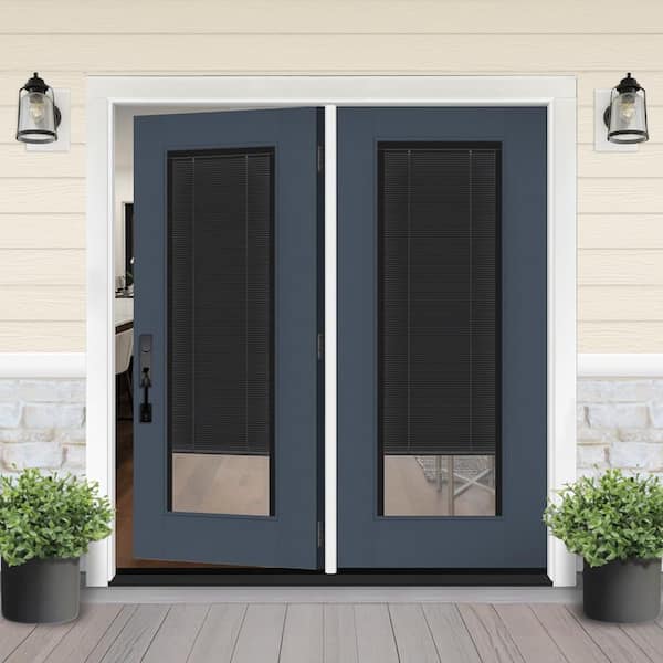Legacy 72 in. x 80 in. Full Lite Clear Glass Noir MB Dark Denim RH Center-Hinged Fiberglass Retro Patio Door w/4"Jamb