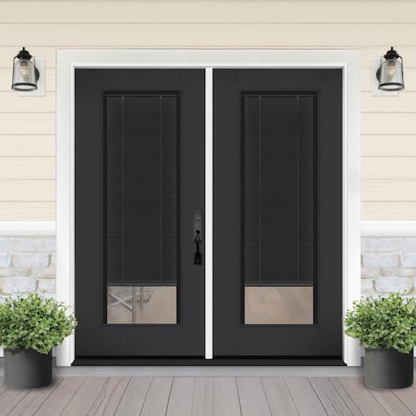 Legacy 72 in. x 80 in. Full Lite Clear Glass Noir Miniblind Black LHIS Fiberglass Retro Patio Door with 4 in. Jamb