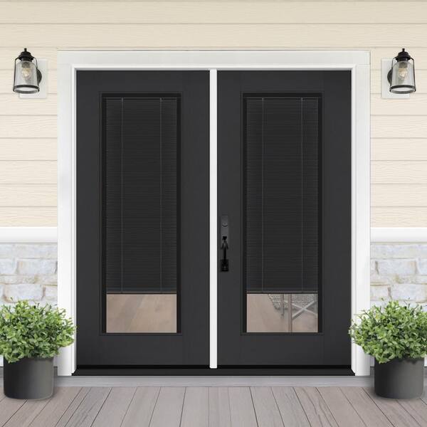 Legacy 72 in. x 80 in. Full Lite Clear Glass Noir Miniblind Black RHIS Fiberglass Retro Patio Door with 4 in. Jamb