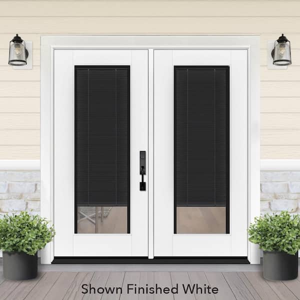 Legacy 72 in. x 80 in. Full Lite Clear Glass Noir Miniblind Unfinsihed LHIS Fiberglass Retro Patio Door w/4"Jamb