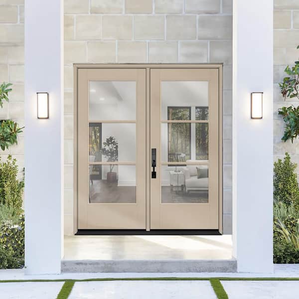 Legacy 72 in. x 80 in. Icon 3L Modern Clear Glass Sandstone RHIS Painted Fiberglass Retro Patio Door w/4"Jamb