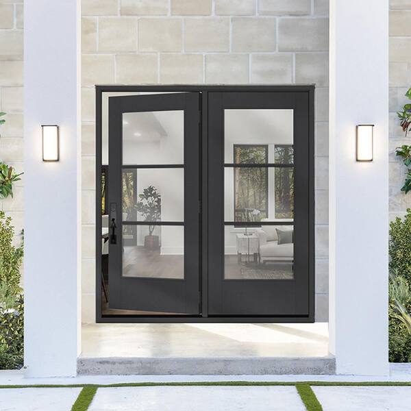 Legacy 72 in. x 80 in. Icon 3L Modern ClearGlass Black RH Center-Hinged Painted Fiberglass Retro Pato Door w/ 4 in. Jamb