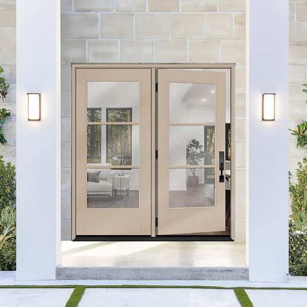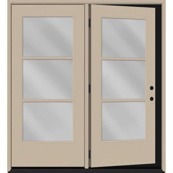 Legacy 72 in. x 80 in. Icon 3L Modern ClearGlass Sandstone LH Center-Hinged Painted Fiberglass Retro Pato Door w/ 6"Jamb