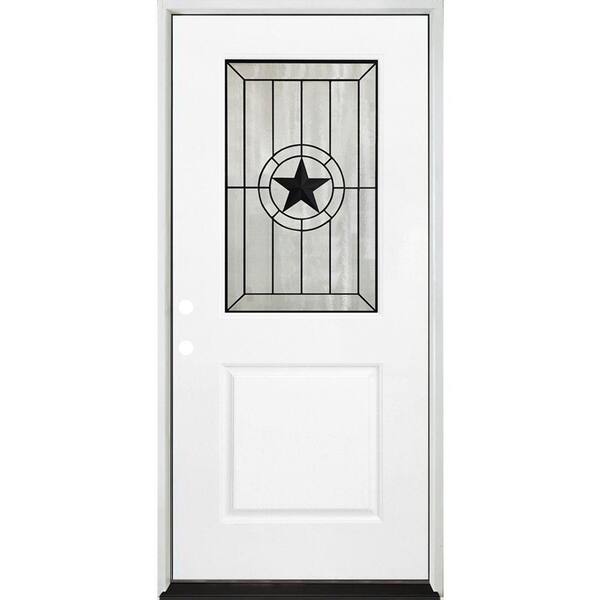 Legacy Alamo 36 in. x 80 in. Right-Hand/Inswing Half Lite Decorative Glass White Primed Fiberglass Prehung Front Door