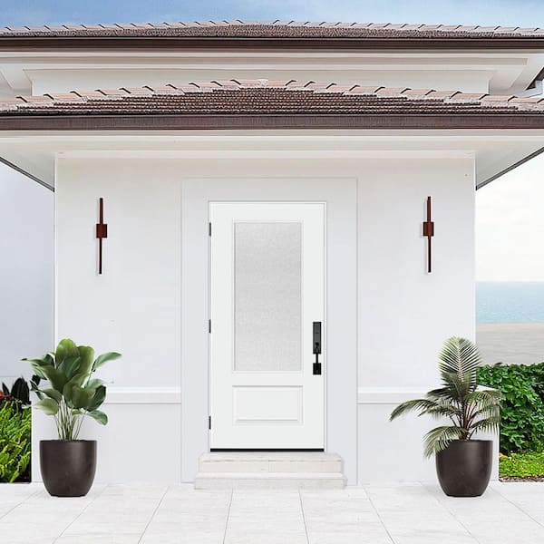Palisade 36 in. x 80 in. 3/4 MicroGranite Impact Glass RHOS Primed Fiberglass Prehung Front Door with 4-9/16 Frame