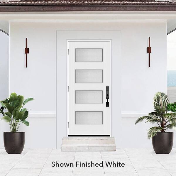 Palisade 36 in. x 80 in. 4L MicroGranite Impact Glass RHOS Unfinished Fiberglass Prehung Front Door with 6-9/16 Jamb