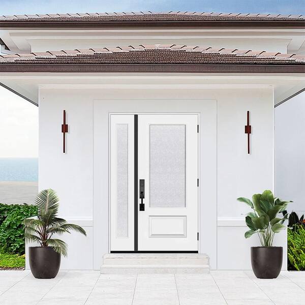 Palisade 51 in. x 80 in. 3/4L MicroGranite Impact Glass RHIS Unfinished Fiberglass Prehung Front Door w/12in. SL6-9/16