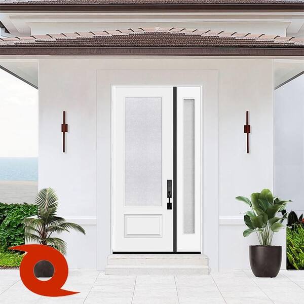 Palisade 51 in. x 96 in. 3/4L Microgranite Impact Glass LHIS Unfinished Fiberglass Prehung Front Door w/12 in. SL 6-9/16