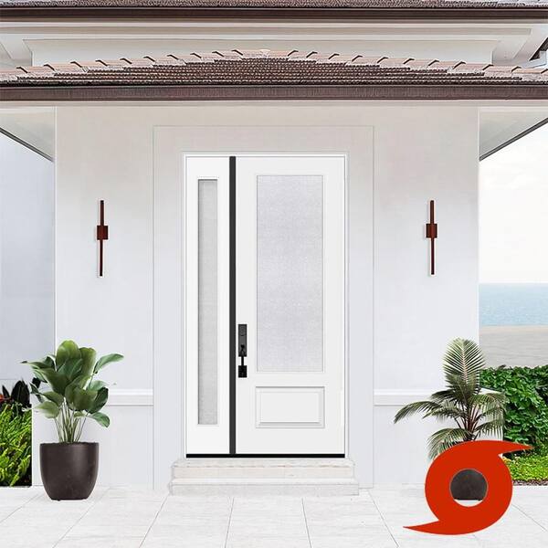 Palisade 51 in. x 96 in. 3/4L Microgranite Impact Glass RHIS Unfinished Fiberglass Prehung Front Door w/12 in. SL 6-9/16