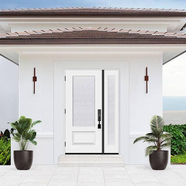 Palisade 53 in. x 80 in. 3/4L Microgranite Impact Glass LHIS Unfinished Fiberglass Prehung Front Door w/14 in. SL 4-9/16