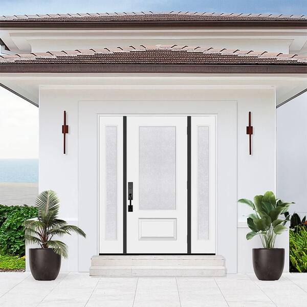 Palisade 68 in. x 80 in. 3/4L MicroGranite Impact Glass RHIS Unfinished Fiberglass Prehung Front Door w/ 14 in. SL4-9/16