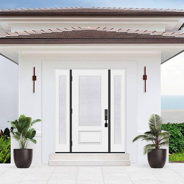 Palisade 68in. x 80in. 3/4L MicroGranite Impact Glass RHOS Unfinished Fiberglass Prehung Front Door w/Dbl-14in. SL6-9/16