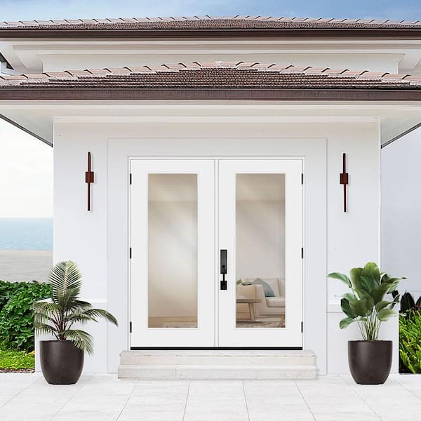 Palisade 72 in. W. x 96 in. Full Clear Impact Glass LHOS Primed Fiberglass Double Prehung Front Door, 6-9/16 in. Frame