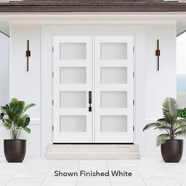 Palisade 72 in. x 96 in. 4L MicroGranite Impact Glass RHOS Unfinished Fiberglass Double Prehung Front Door w 6-9/16 Jamb