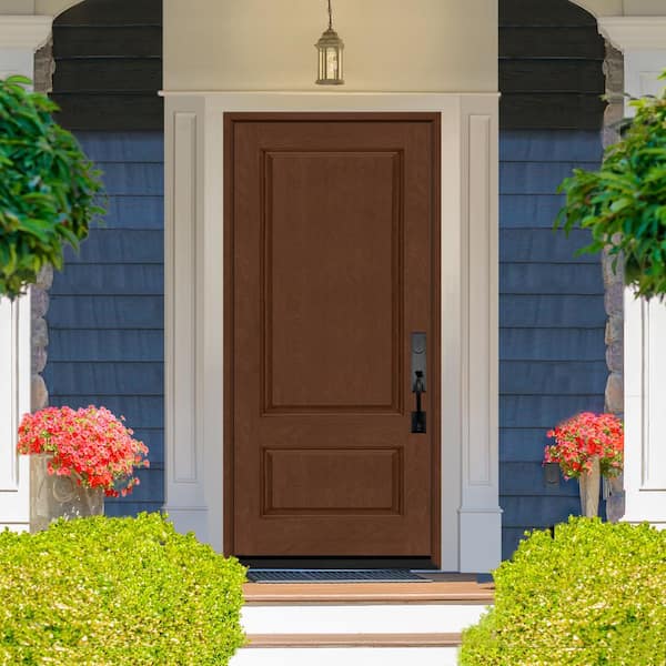 Regency 36 in. x 80 in. 2Panel 3/4-Squaretop LHIS Chestnut Stained Fiberglass Prehung Front Door
