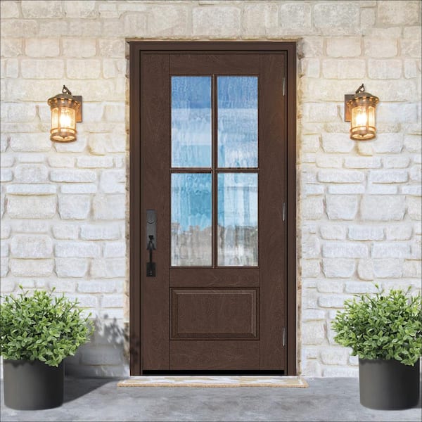 Regency 36 in. x 80 in. 3/4 Lite 4 SDL Oasis Decorative Glass LHOS Prefinished Chestnut Fiberglass Prehung Front Door