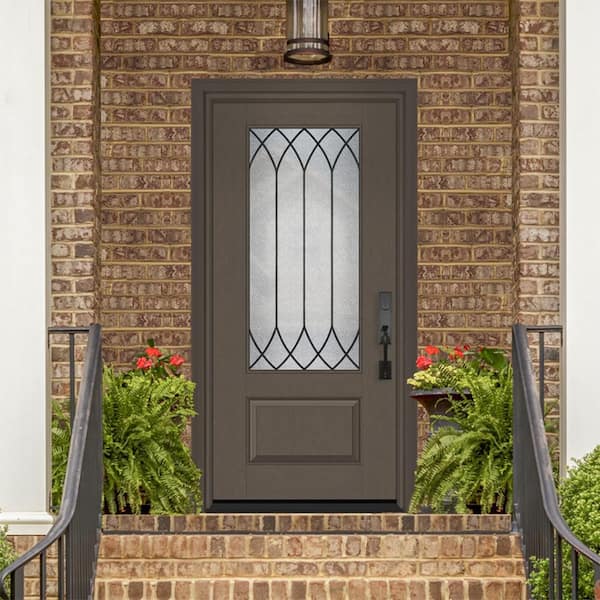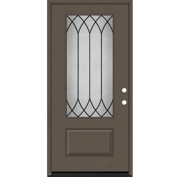 Regency 36 in. x 80 in. 3/4-Lite Spire Decorative Glass LHIS Ashwood Stained Fiberglass Prehung Front Door