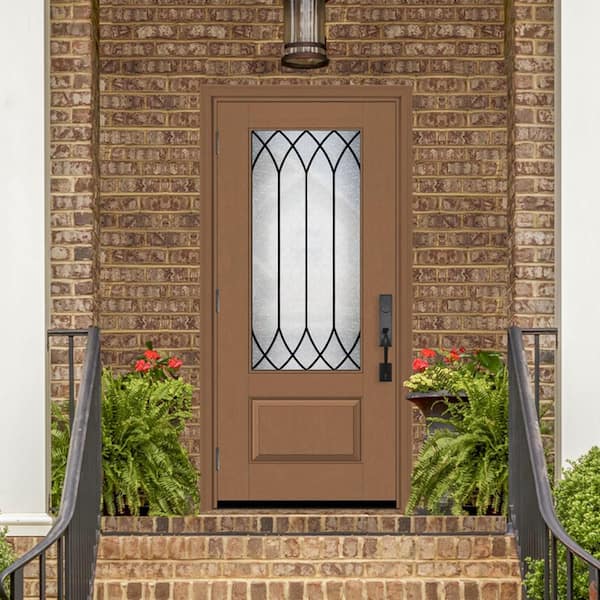 Regency 36 in. x 80 in. 3/4-Lite Spire Decorative Glass RHOS Autumn Wheat Stained Fiberglass Prehung Front Door