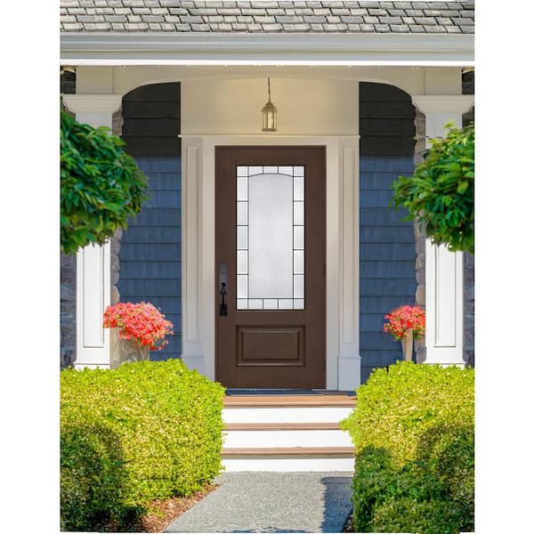 Regency 36 in. x 80 in. 3/4L Empire Decorative Glass LHOS Hickory Fiberglass Prehung Front Door with 6-9/16 Jamb