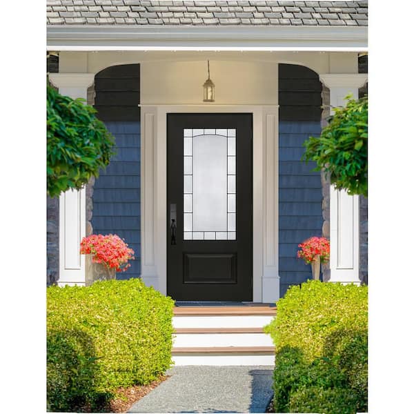 Regency 36 in. x 80 in. 3/4L Empire Decorative Glass LHOS Onyx Fiberglass Prehung Front Door with 4-9/16 Jamb