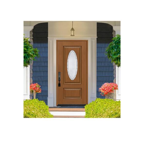 Regency 36 in. x 80 in. 3/4L Oval Empire Decorative Glass RHIS AutumnWheat Fiberglass Prehung Front Door with 6-9/16 Jb