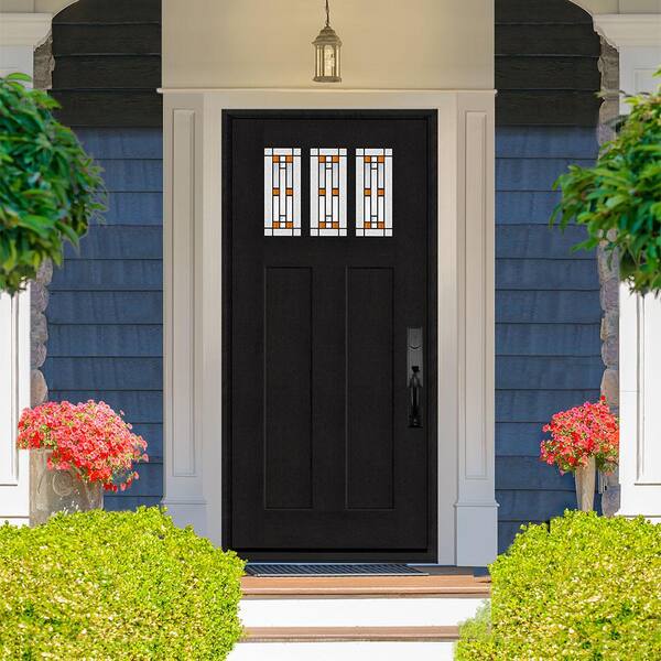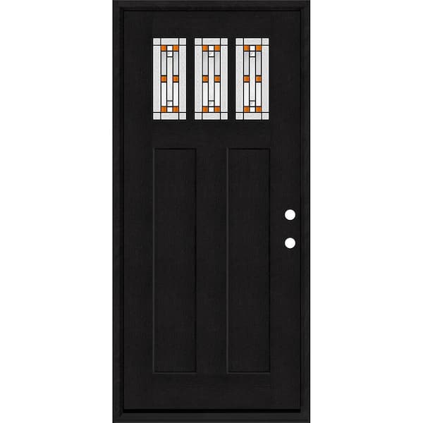 Regency 36 in. x 80 in. 3-Lite Amberton Decor Glass LHIS Onyx Stain Fir Grain Fiberglass Prehung Front Door