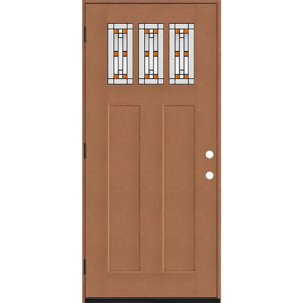 Regency 36 in. x 80 in. 3-Lite Amberton Decorative Glass RHOS Autumn Wheat Stain Fir Grain Fiberglass Prehung Front Door