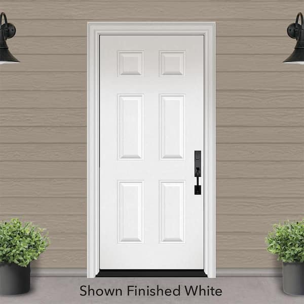 Regency 36 in. x 80 in. 6 Panel LHIS Unfinished White Mahogany Fiberglass Prehung Front Door with 4-9/16 Jamb