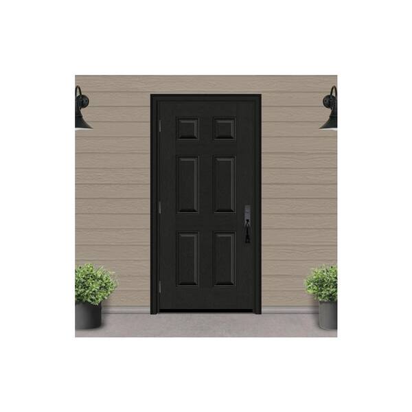 Regency 36 in. x 80 in. 6 Panel RHOS Onyx Stain Mahogany Fiberglass Prehung Front Door with 4-9/16 Jamb