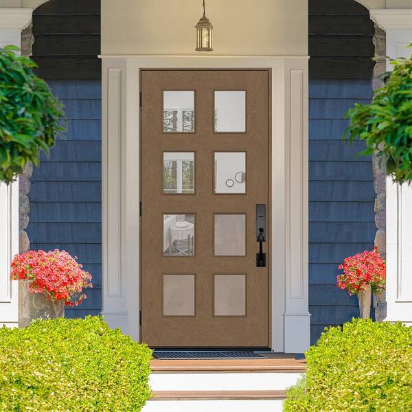 Regency 36 in. x 80 in. 8L Modern Clear Glass RHOS Autumn Wheat Stained Fiberglass Prehung Front Door w/4 in. Jamb