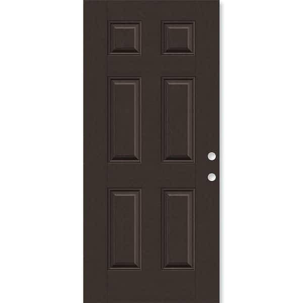 Regency 36 in. x 80 in. Left-Handed 6 Panel Hickory Stain Mahogany Fiberglass Front Door Slab