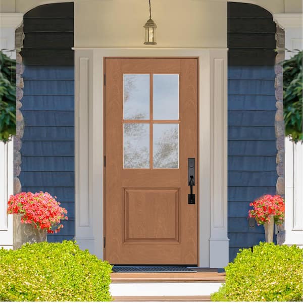 Regency 36 in. x 80 in. Universal Handing 1/2-4Lite Clear Glass Autumn Wheat Stain Mahogany Fiberglass Front Door Slab