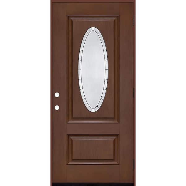 Regency 36 in. x 80 in. Universal Handing 3/4L Oval Empire Decorative Glass Chestnut Fiberglass Front Door Slab