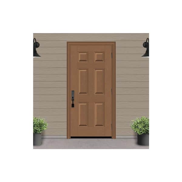 Regency 36 in. x 80 in. Universal Handing 6 Panel Autumn Wheat Stain Mahogany Fiberglass Front Door Slab