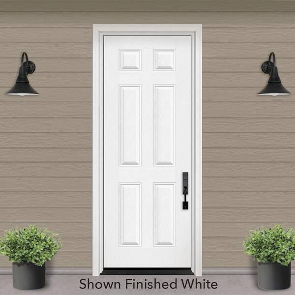 Regency 36 in. x 96 in. 6 Panel LHIS Unfinished White Mahogany Fiberglass Prehung Front Door with 4-9/16 Jamb